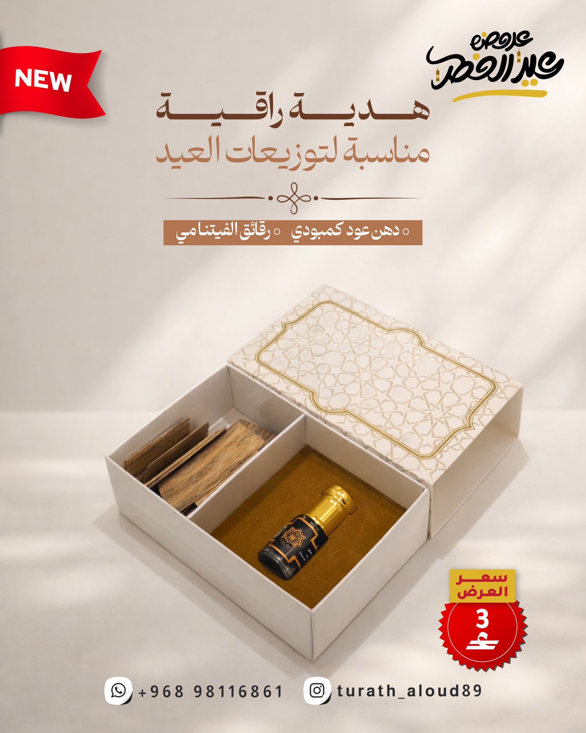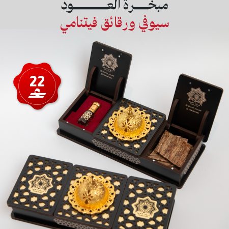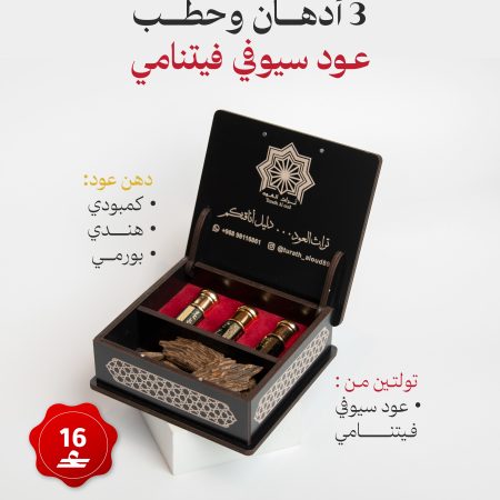 مكونات الصندوق: عود بورمي ، هندي و كمبودي مع تولتين من حطب العود المروكي المحسن