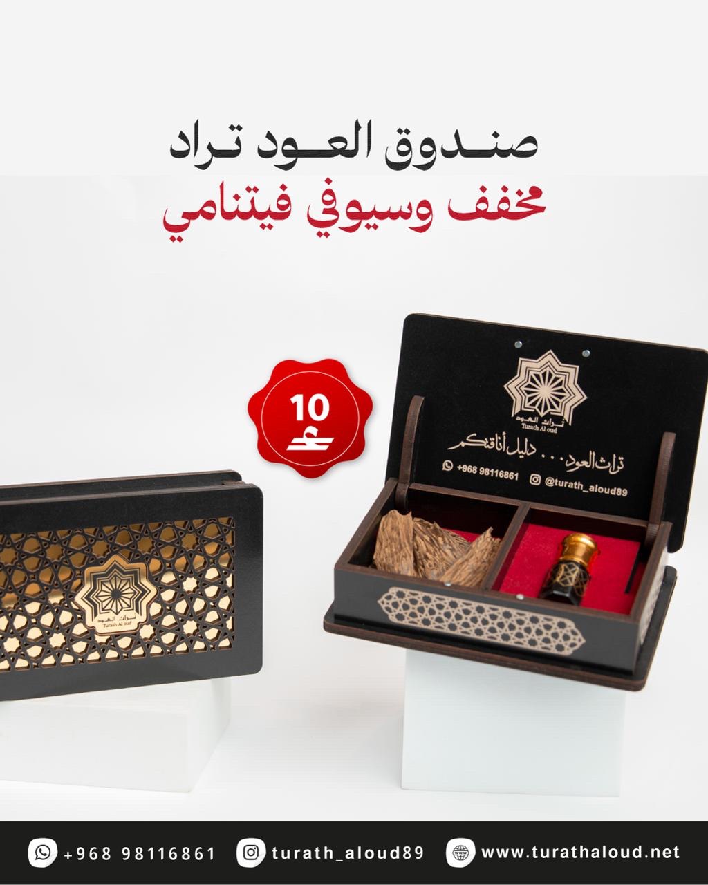 مكونات الصندوق : عطر سلطان العود دهن ورد طائفي دهن عود كمبودي بخور البركة