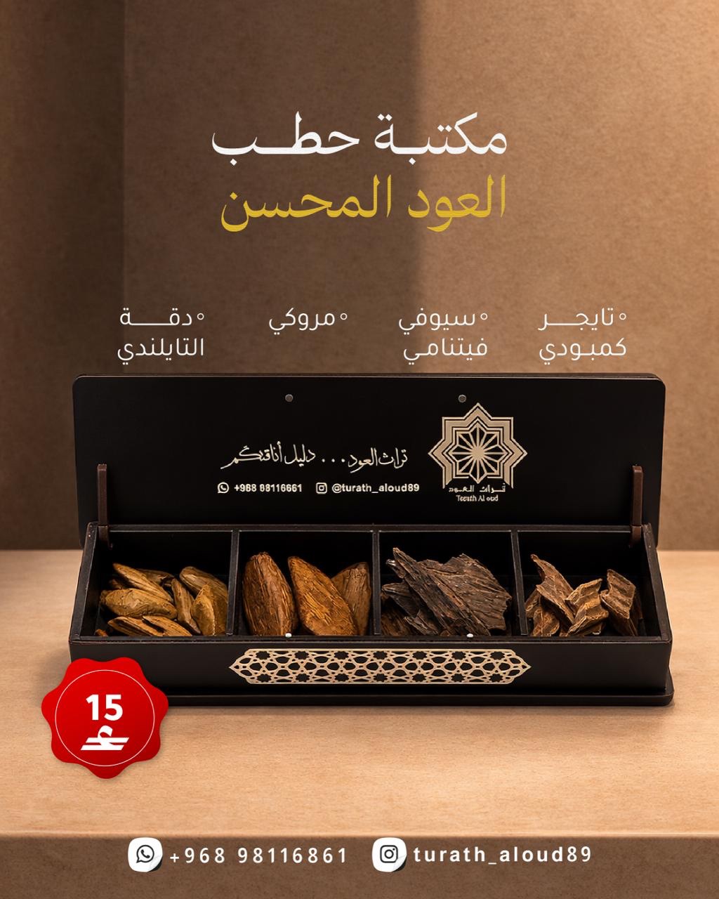 صندوق مكون من 4 تولات مختلفة من حطب العود المحسن